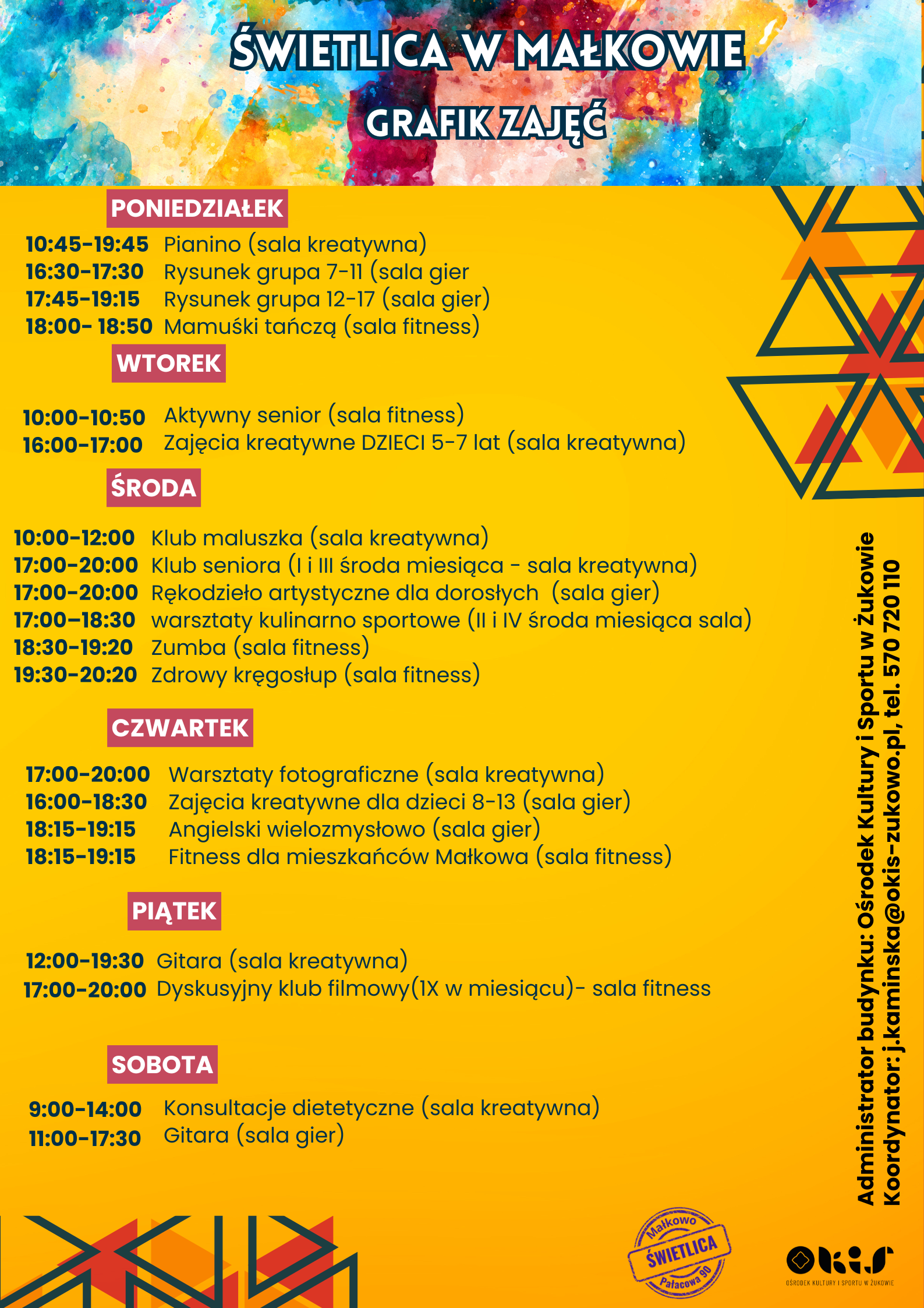 Koordynatorką świetlicy w Małkowie jest p. Joanna Kamińska: tel. 570 720 110, e-mail: j.kaminska@okis-zukowo.pl