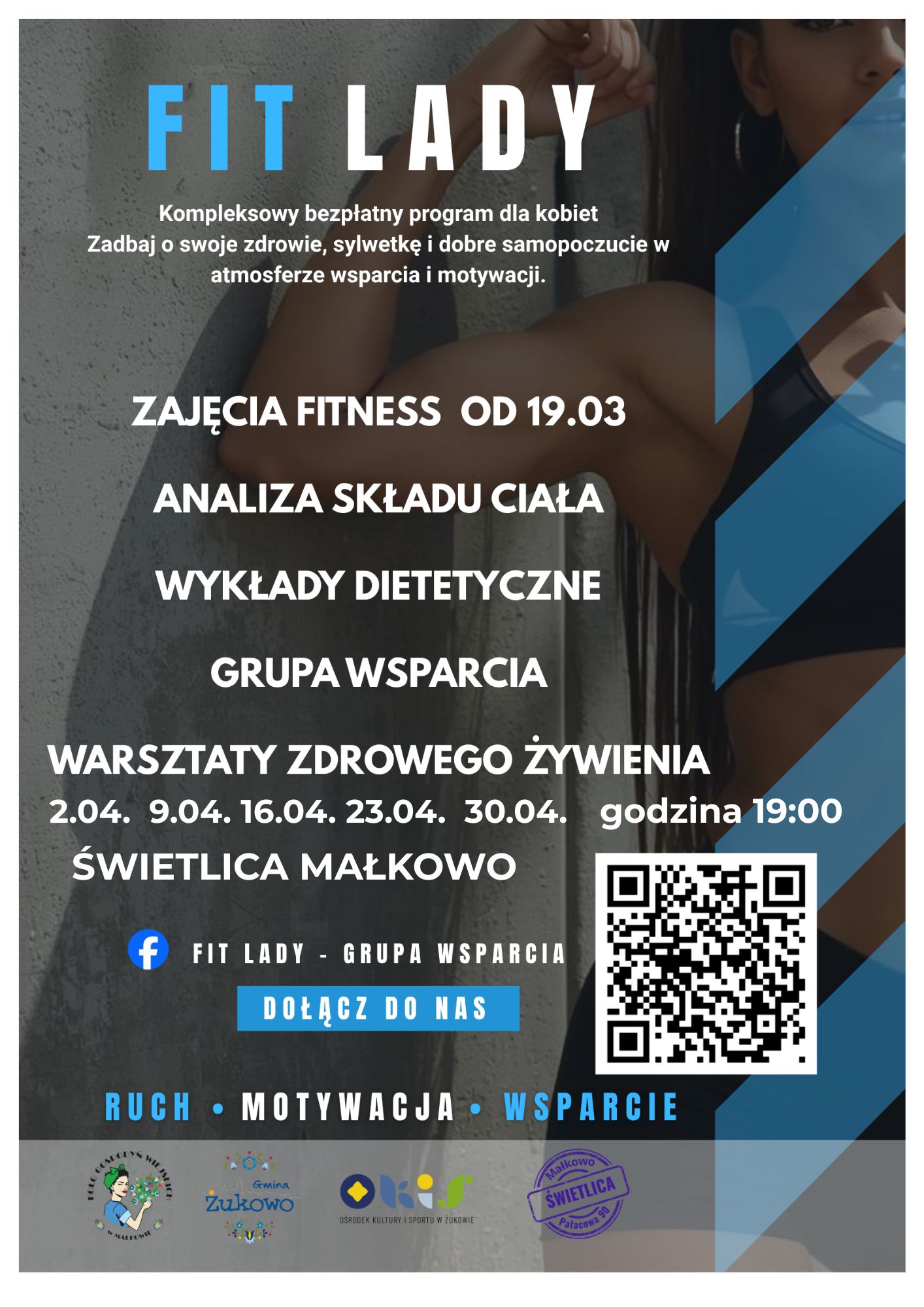 FIT LADY – to coś więcej niż projekt, to zmiana stylu życia na aktywny i zdrowy. Program organizowany przez Koło Gospodyń Wiejskich w Małkowie i finansowanego przez Gminę Żukowo w ramach programu realizacji zadań gminy w zakresie wspierania i upowszechniania kultury fizycznej. Dzięki temu wsparciu zajęcia są darmowe dla uczestniczek. Zajęcia w każdy czwartek o 19:00.