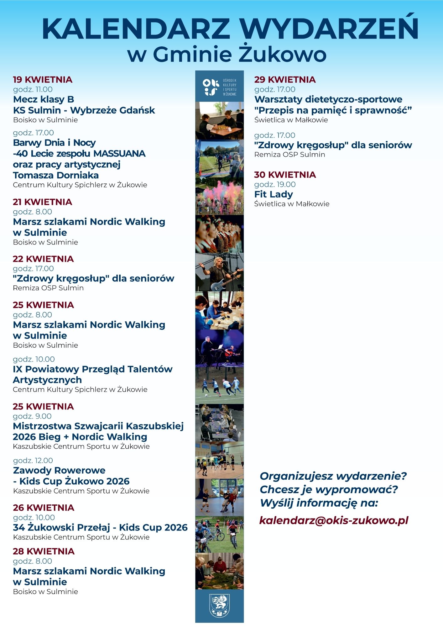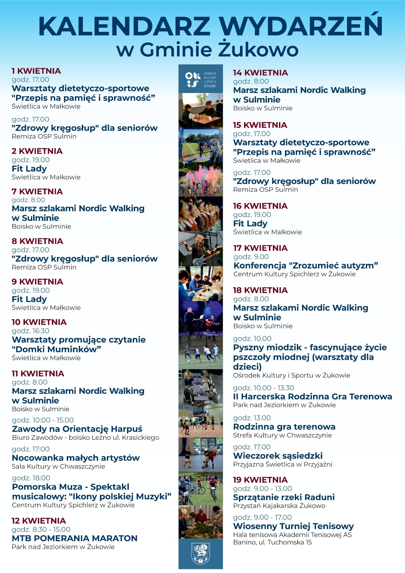 Kalendarz wydarzeń na kwiecień Ośrodek Kultury i Sportu w Żukowie